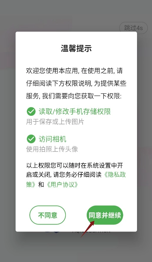 1、首次打开应用时,需要点击确认弹窗中的协议,同意后才能进入主界面。