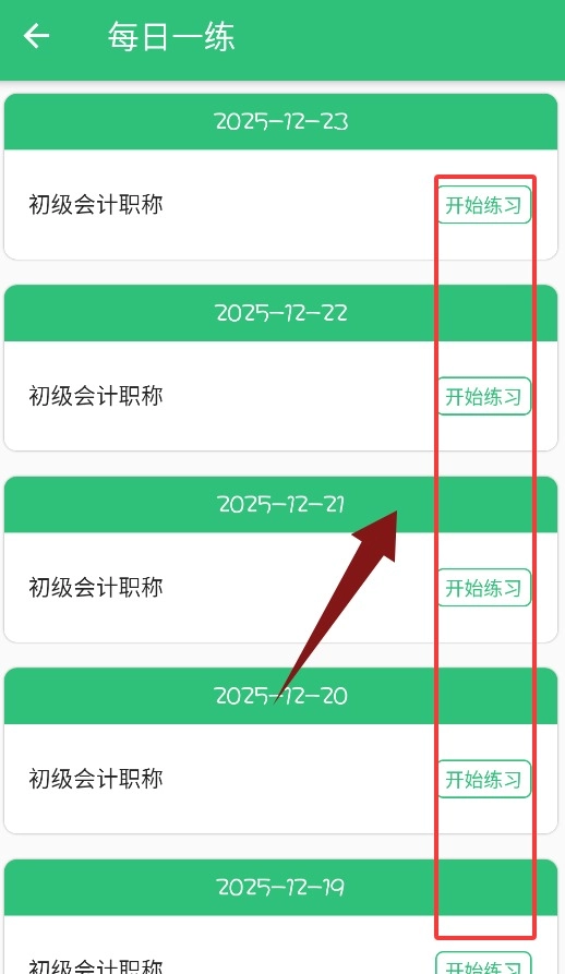 3、在每日一练界面点击“开始练习”按钮,就能进入答题模式。