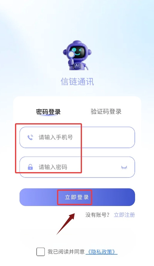 4、回到登录页面,输入手机号和密码后点击立即登录按钮,就能完成操作。