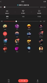 5、录制结束后能够开展修音操作,调整混响、音量以及均衡器的参数,完成这些设置后点击下一步按钮就可以了。