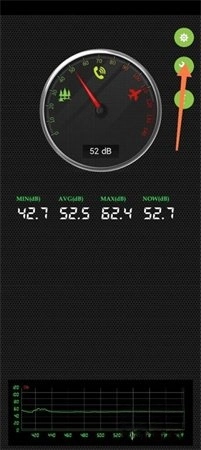 进入我们的噪音分贝仪界面,能看到它正处于实时监测状态,此时点击右上角的扳手图标即可。