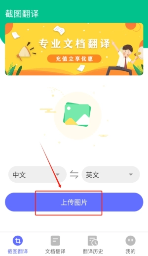 2、选择上传图片功能,系统会自动识别并翻译图片中的文字,帮助您迅速获取所需信息。