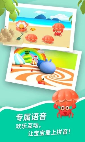 2、发音互动环节:融合真人发音示范与生动的动画演示,助力孩子精准掌握拼音的发音技巧。