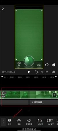 3、把那条切割线拖到你打算截去的视频片段的起始位置,点击分割;接着把切割线拖到该视频片段的结束位置,再次点击分割。