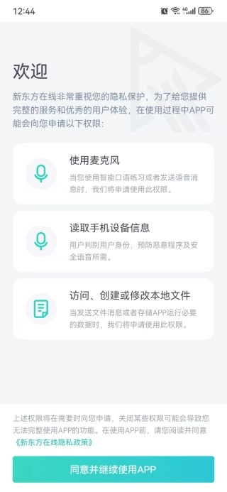2、新用户会看到欢迎页面,点击页面下方的“同意并继续使用”按钮,即可进入后续操作步骤。