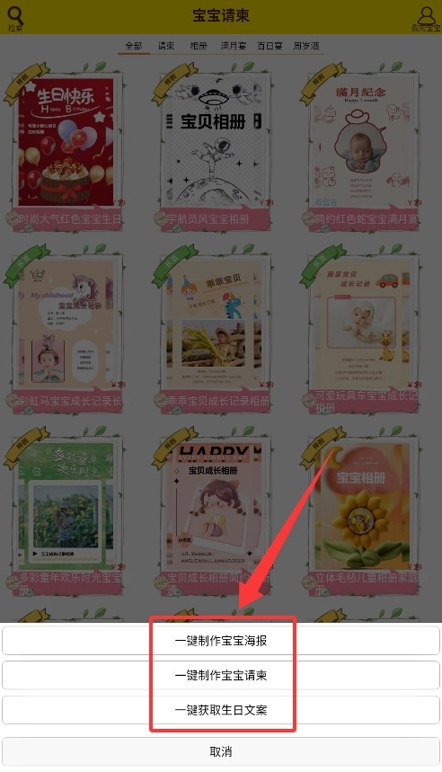 3、在系统提供的各类模板里挑选合适的样式,像成长纪念册或者生日邀请函这类,就能进入编辑界面修改内容。