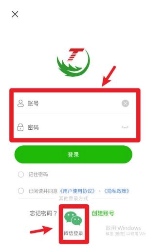 1、打开并进入登录页面,输入账号密码,或者选择微信登录方式,勾选相关协议后,点击绿色按钮即可进入系统。