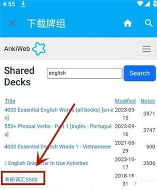 3、打开共享牌组列表,这里展示的都是其他用户分享的牌组,你可以从中挑选一个适合自己的,点击它即可进行后续操作。