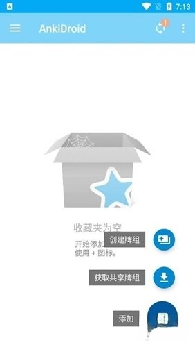 1、第一步先打开AnkiDroid软件的主页,接着点击右下角的添加牌组按钮。