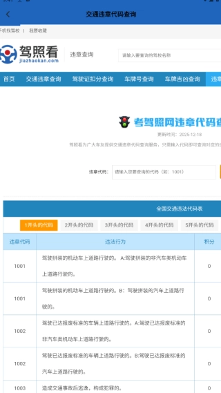 2、进入交通违章代码查询界面,可查询全面的相关信息,覆盖各类违章情形;