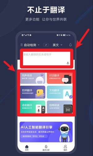 1、翻译准确自然:基于神经网络AI引擎,翻译准确度优于传统系统,语句通顺自然。