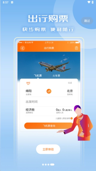 2、滑动宣传图至最后一页,找到对应页面后点击“马上体验”,进入后续流程;