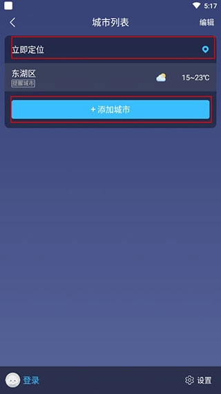 在城市列表页面点击编辑选项,就能设置需要主动提醒的城市。