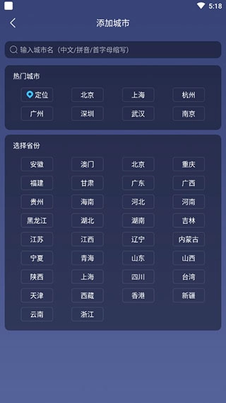 手动定位的话,直接在搜索栏输入你想了解的城市,点击一下就能添加了。