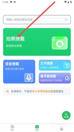 3、搜题界面配备了多样化的搜题功能,拍照搜题能快速呈现答案,同时也支持语音、文字和悬浮窗搜题,方便考生在备考时迅速获取题目解析。