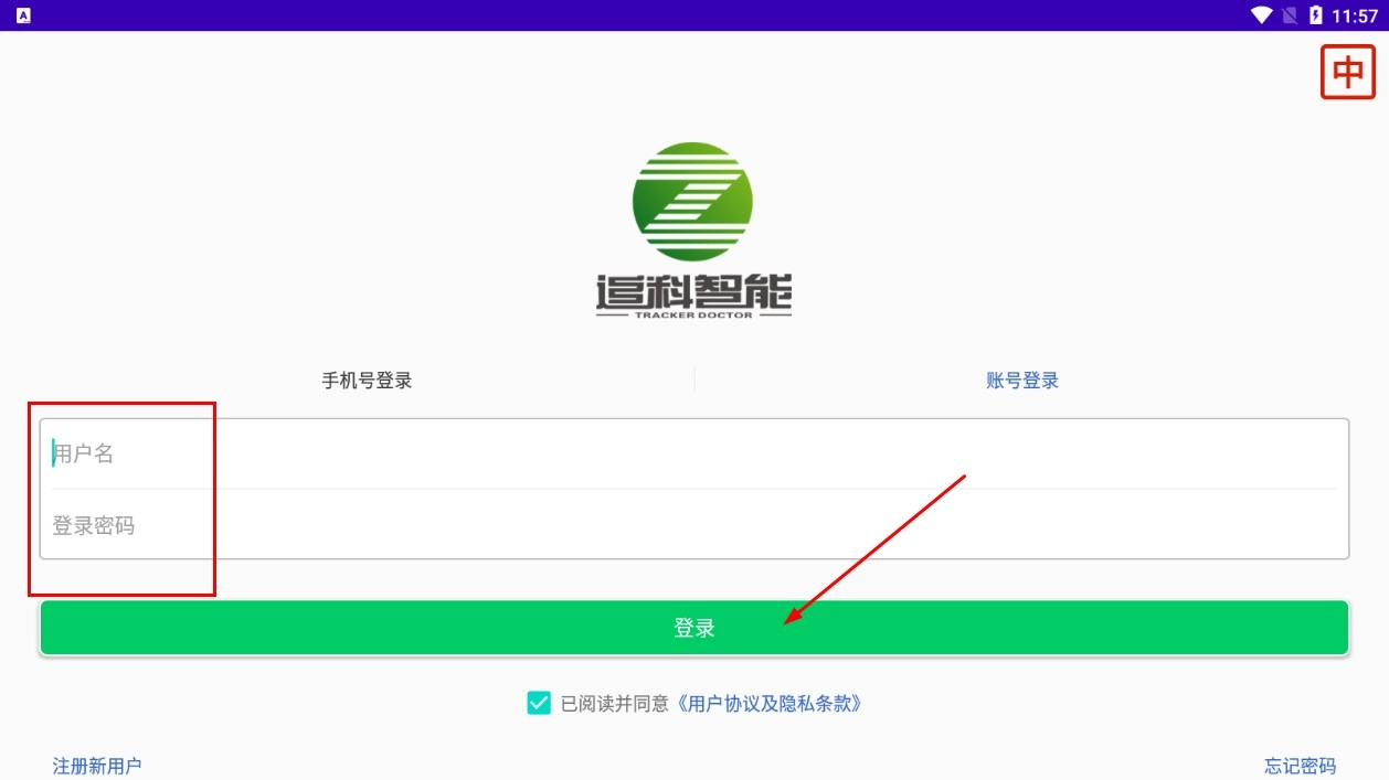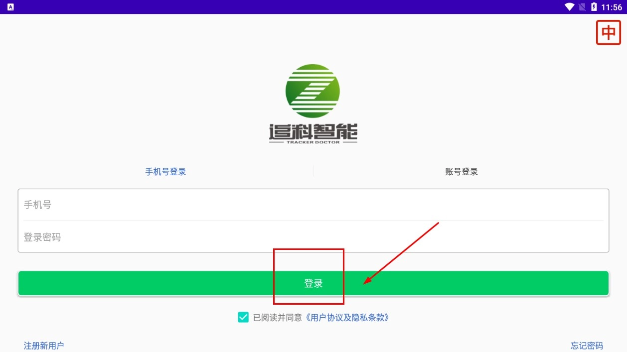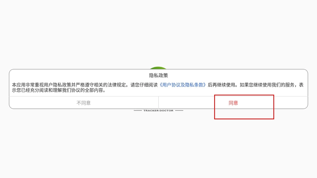 在隐私政策页面,点击【同意】功能按钮,即可进入登录界面。