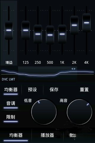 在均衡器界面,你能通过点击旋钮的上方或下方来进行微调,并且可以依据个人喜好将其设置成多种不同的风格。