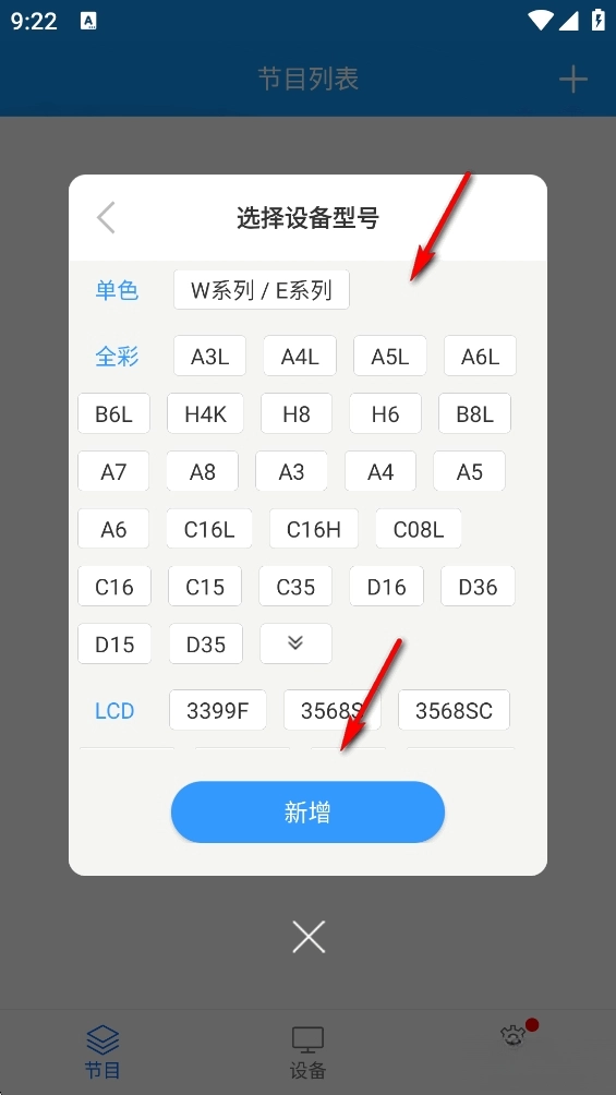 选择设备型号后点击【新增】