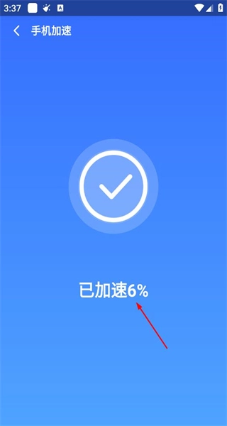 进入手机加速界面后,能看到进度提示,界面显示已完成百分之六的加速,接下来只需等待加速流程结束,就能进一步推进手机的优化进程。