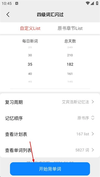 6、在词书详情页点击开始背单词按钮,即可更换该词书。