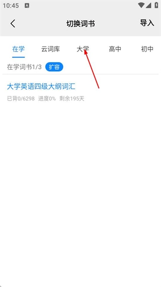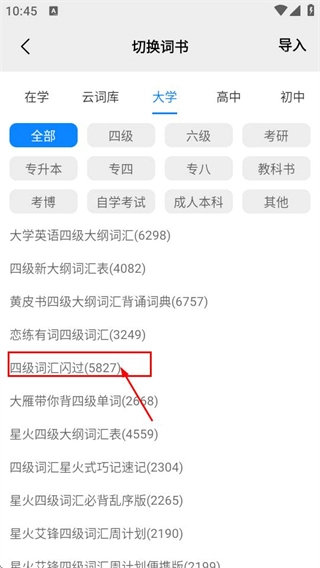 4、在切换词书页面选择目标分类标签,筛选对应词书。
