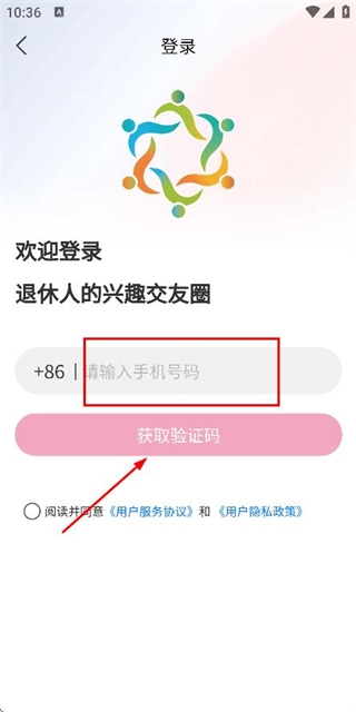 3、在手机登录页面填写手机号,勾选协议后,点击获取验证码。