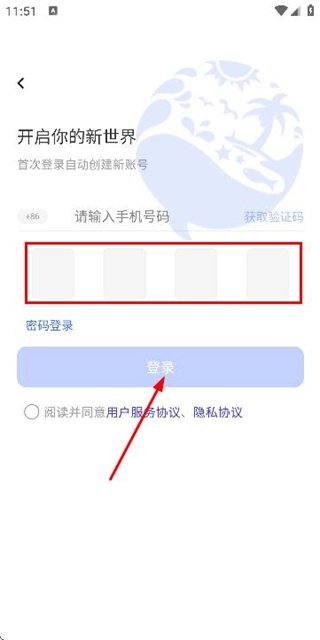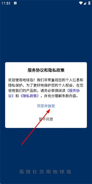 1、在使用协议隐私政策弹窗中点击同意并接受,进入登录页面。
