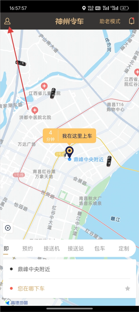 打开神州专车App后,点击左上角的个人头像,进入个人中心页面。