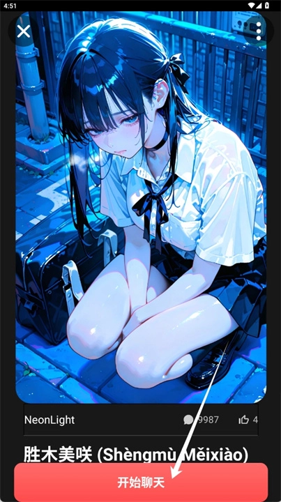 3、如图片所示,可随意挑选角色,进入对应界面后点击“开始聊天”按钮。