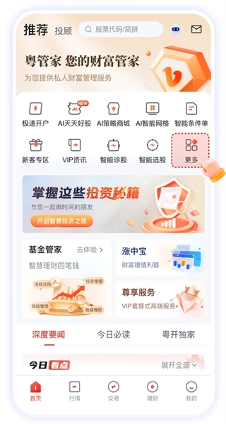 粤管家App以“资产配置、科学投资、陪伴服务”为方向,推出一系列高效、简易、便利的投顾产品及智能化投资理财工具,