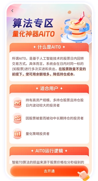集手机开户、高速行情、普通交易、融资融券、理财基金、财经资讯、账户分析、业务办理、投顾社区、智能投顾、众多智能交易工具等功能于一体,