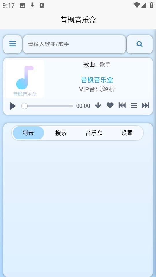 昔枫音乐盒是一款界面UI设计简约现代的音乐播放软件,用户可以在这里聆听喜爱的歌曲。它支持通过输入歌曲名称来搜索匹配,帮你回忆人生不同阶段的那些难忘旋律。软件还能将歌曲下载到本地,即使无需在线收听也能随时回味,感兴趣的话不妨来体验一番。
