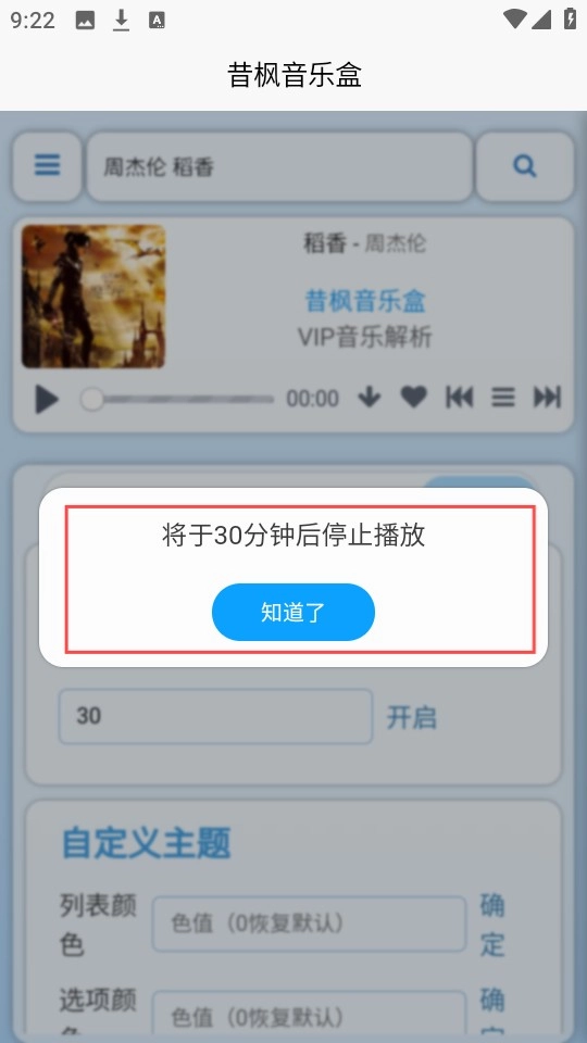 此时屏幕上会显示设备将在30分钟后自动停止播放的提示信息。