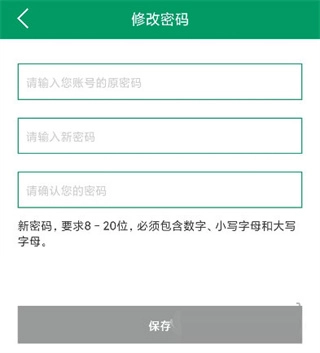 选择【修改密码】选项,先输入账号的原密码,接着设置新密码并再次确认新密码,最后点击【保存】按钮,就能完成密码重置操作。