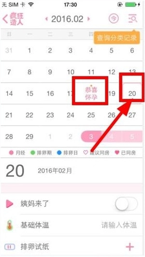 然后在对应的2月20号的位置,点击箭头所指的“我怀孕啦”按钮,这样就修改完成了。