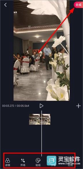 4、编辑完成后点击右上角合成按钮,预览效果满意后即可保存至手机相册。