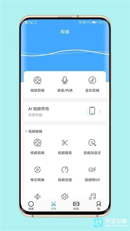 2、在编辑页面可选择剪辑工具,支持视频裁剪、相册制作及背景音乐添加等功能。