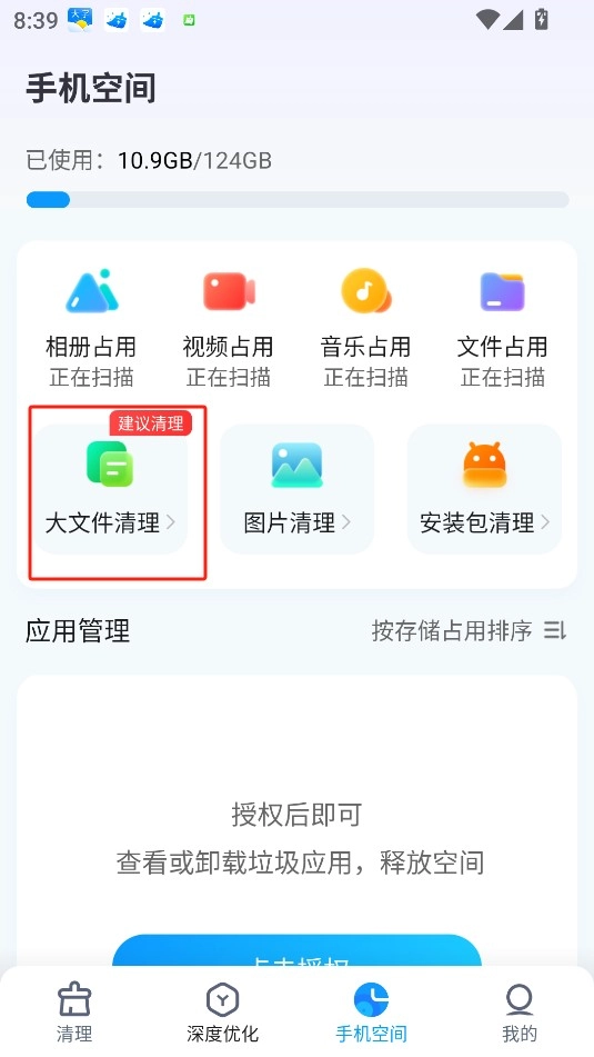 在手机空间功能区,也能进行大文件清理操作,有效缓解了手机存储空间不足的困扰。