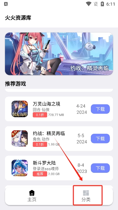 火火资源库的使用方法是怎样的呢? 1、打开软件进入主页后,就能看到不少推荐的游戏。