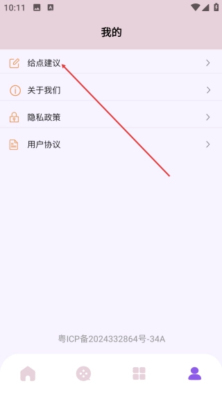 2、进入我的页面后,点击【给点建议】选项,即可进入建议反馈的操作界面。