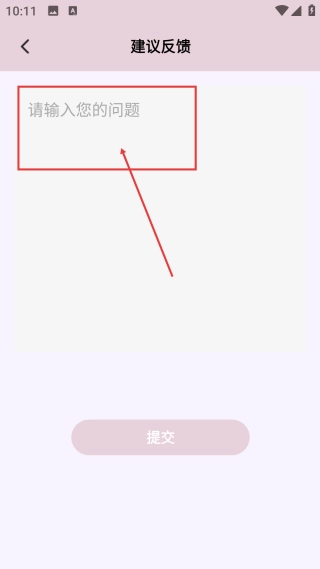 3、进入建议反馈页面后,填写需要反馈的具体内容,随后准备提交。