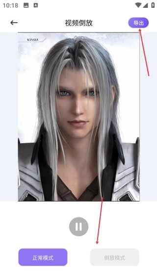 4、进入视频倒放页面后,先选择【倒放模式】,再点击【导出】按钮,就能完成视频倒放的操作了。