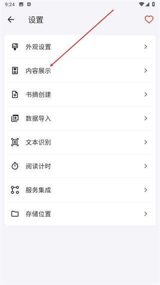 2、在设置页面中,找到内容展示选项,点击进入对应设置界面。