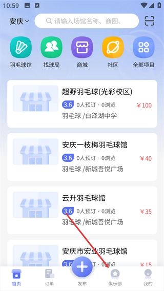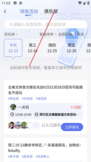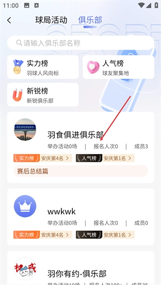 2、进入后,点击顶部的【俱乐部】标签,切换至俱乐部列表页面。