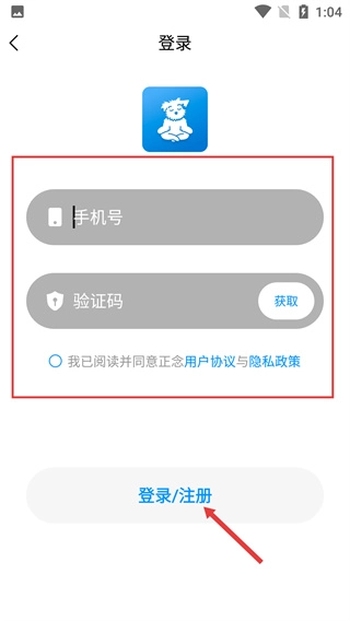 1、在登录界面,填写【手机号】,获取【验证码】后填入,勾选【我已阅读并同意正念用户协议与隐私政策】,点击【登录/注册】完成登录。