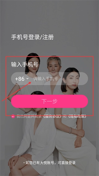 在手机号登录或注册的页面里,输入手机号之后点击【下一步】按钮。