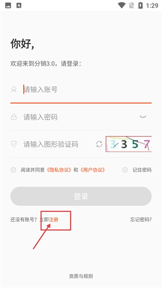 进入登录界面后,如果还没有注册账号,就点击【立即注册】按钮,先完成账号注册,并且要填写图形验证码等信息来完成登录。