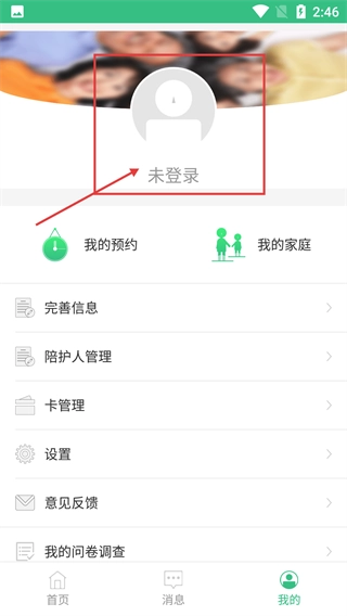 进入【我的】页面后,点击【未登录】区域,就能进入登录界面。