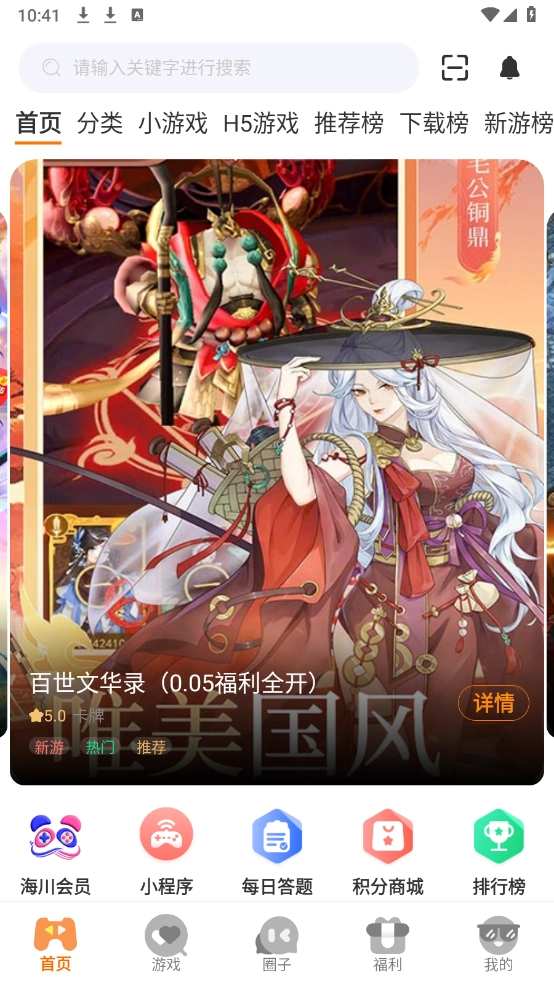 海川采用简洁直观的界面设计,通过不同颜色区分各个模块与功能区域,帮助用户快速定位所需功能和信息;平台汇聚了海量优质有趣的游戏资源,种类丰富多样,且所有游戏资源均经过严格的安全测试,用户可放心体验,无需担忧设备受损。