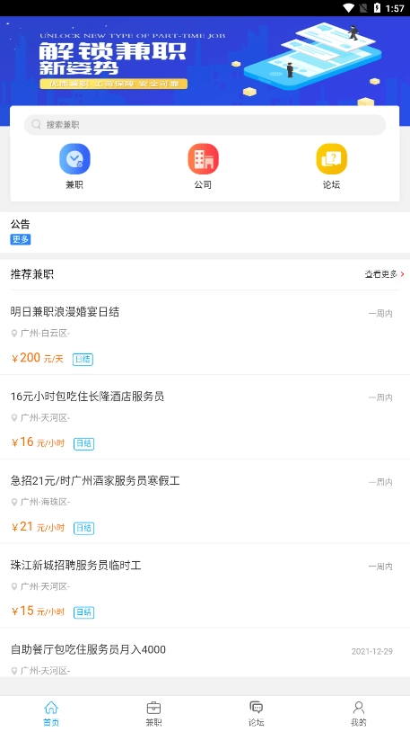 可以按兼职类型进行搜索,也能按公司来搜索。
